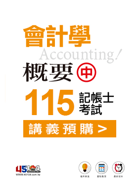 適用:記帳士考證、普考之會計學考試範圍。